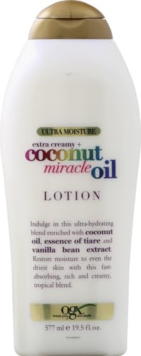OGX Extra Creamy + Coconut Miracle Oil Ultra Moisture Body Lotion with Vanilla Bean, Fast-Absorbing Lotion for All Skin Types, Paraben-Free and Sulfated-Surfactants Free, 19.5 fl oz