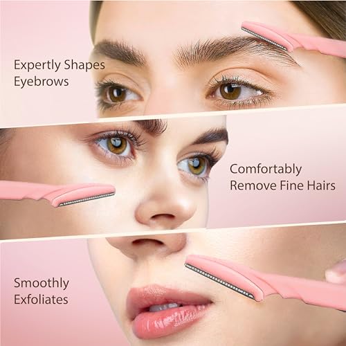 Eyebrow Razor with Precision Cover, Dermaplane Razor 3 ct | Eyebrow Trimmer for Eyebrow Shaping,Face Razors for Women, Facial Razor, Dermaplaning Razor, Womens Face Razor Peach Fuzz