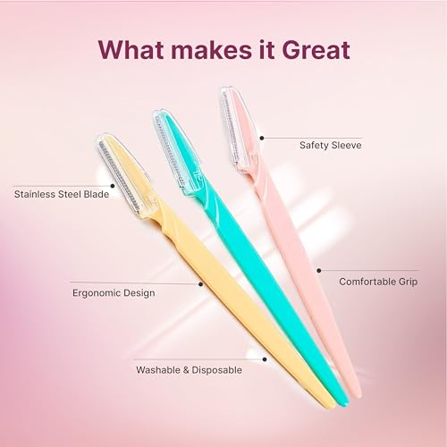 Be the first to review “Eyebrow Razor with Precision Cover, Dermaplane Razor 3 ct | Eyebrow Trimmer for Eyebrow Shaping,Face Razors for Women, Facial Razor, Dermaplaning Razor, Womens Face Razor Peach Fuzz”